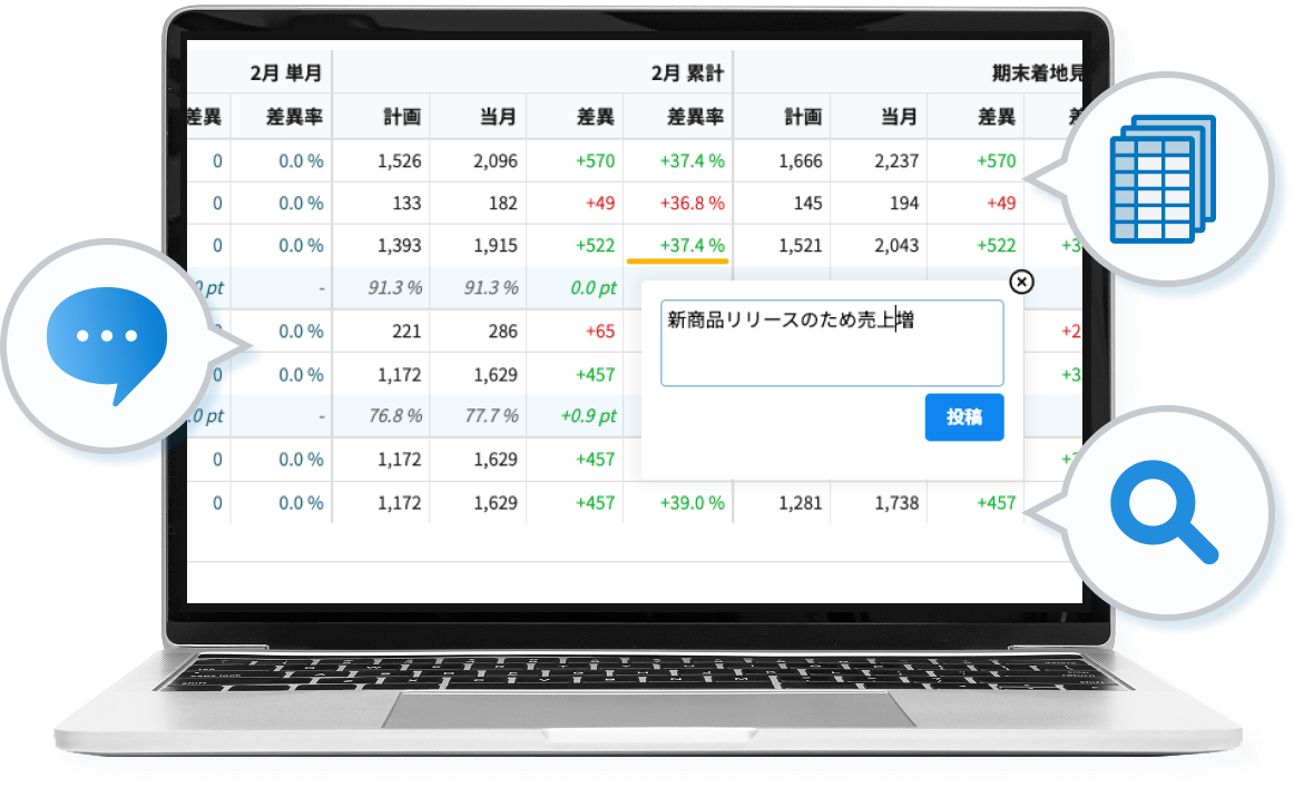 差異要因をセル単位・レポート単位でコメントとして保持が可能