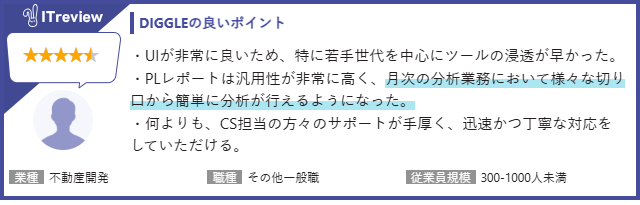 具体的には、「DIGGLE」のご利用企業様からは、以下のようなレビューをいただいています。(一部抜粋)